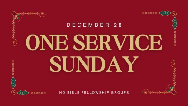 For our last Sunday of the year, we will have one service at 10am and no Bible Fellowship Groups will meet. We hope you had an amazing Christmas and want to wish you and your family a Happy New Year!